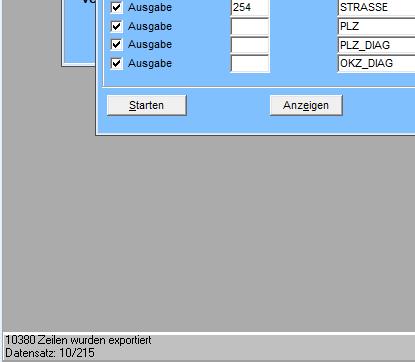 Der nächste Schritt beim Export aus GTDS ist die eigentliche Erstellung der Export-Tabelle. Die Befüllung der Auswertungstabelle dauert einige Zeit - man kann der Befüllung zusehen.